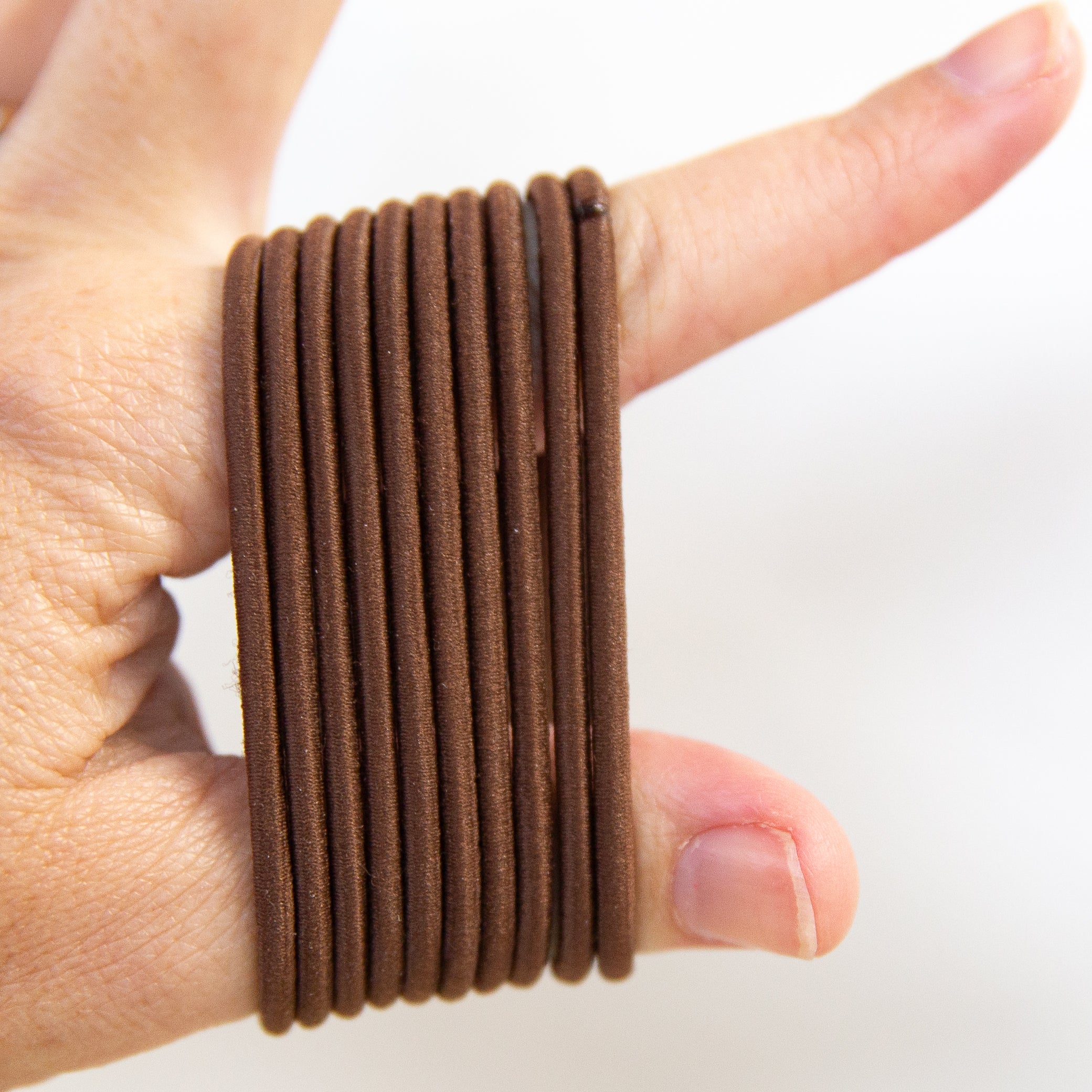 Brunette brown 10 pack of hair elastics for Gypsea Loop hair Tie Bangle